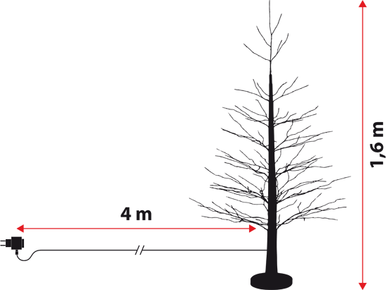 Sur le câble d'alimentation de 4 mètres se trouve un transformateur qui réduit la tension électrique garantissant ainsi une décoration sûres.
