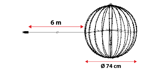La sphère fait partie de la série HDM (High Density Microled), qui rassemble une série de figures lumineuses décorées avec de nombreux microleds. Elle fonctionne à basse tension via le transformateur inclus et est fournie avec un pratique câble d'alimentation de 6 mètres de long, permettant de la positionner facilement même loin de la source d'alimentation électrique.