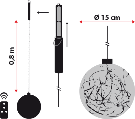 La boule lumineuse a un diamètre de 15 centimètres et contient 20 micro-LED blanc chaud à l'intérieur.