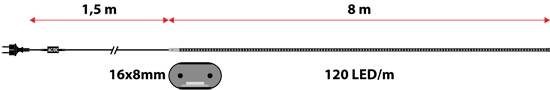 Ce tube lumineux de 16 x 8 mm est traversé à l'intérieur par 960 Led (120 Led par mètre) blanc chaud à une lumière constante. Sa structure le rend plus lumineux que la plupart des tubes Led. La luminosité des Led est répartie uniformément sur les deux côtés du tube, pour un effet final très élégant et panoramique.
