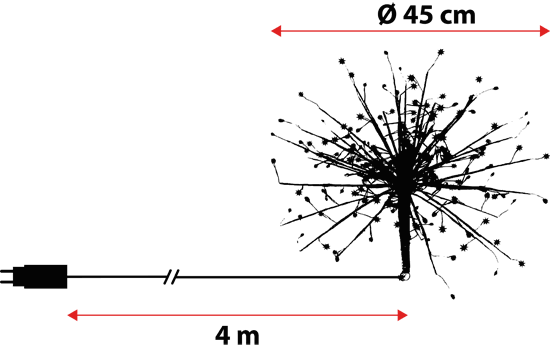 Cette décoration est parfaite pour créer une atmosphère suggestive à l'intérieur de votre maison ou de votre magasin. La longueur du câble d'alimentation de 4 mètres vous permettra de placer la Twigball où bon vous semble.