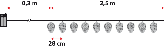 - 2,5 m di luci, 10 pigne h. 70 mm in vetro