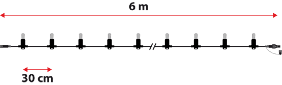 Catena professionale di 6 metri con 20 lampadine led bianco caldo sostituibili, fornita senza il cavo di alimentazione, da acquistare separatamente.