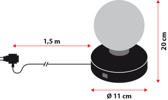 Questa magica sfera rotante, con all'interno 3 led colorati da 0,5 W ognuno, proietta sui muri luce nei colori blu, rosso e verde. Il movimento della sfera e la proiezione dei colori sullo sfondo circostante avvengono in automatico.