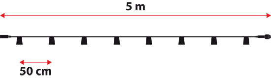 Il cavo nero è spesso e resistente, adatto quindi ad una maggiore trazione in caso di sospensione della catena senza sostegni per metrature fino a 10 metri. La possibilità di prolungarla attraverso i connettori integrati ti consente di realizzare allestimenti anche di grandi metrature. Ti basterà in questo caso acquistare ulteriori catene e un trasformatore più potente.