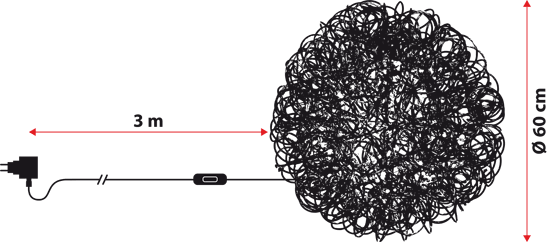 La sfera è per uso interno, ha in dotazione un cavo di alimentazione di 3 metri e funziona in bassa tensione.