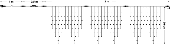 Stalattite 3 x h 0,9 m, 228 maxiled bianco caldo, cavo verde, prolungabile, IP67