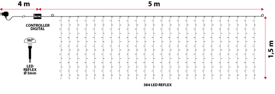 5 / 5 - Tenda 5 x h 1,5 m, 384 led bianco freddo