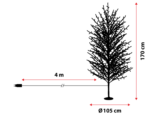Questo albero è alto ben 170 centimetri e presenta una serie di rami che si diramano dal tronco, i quali sono modellabili grazie all'anima in metallo che li attraversa, così da poterlo adattare alle esigenze della propria decorazione. Inoltre, grazie alla sua apertura, questo albero può raggiungere un diametro di 105 centimetri, conferendo un effetto visivo davvero notevole.
