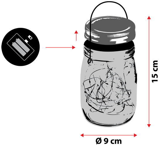 - Batterie 2 x AAA per barattolo (non incluse)