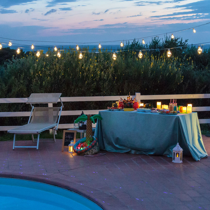 Queste sono solo alcune delle idee da cui prendere spunto per personalizzare una festa in piscina con le luci. Ce ne sono molte altre, ma non posso raccontartele tutte ora. Ti rivelo però con quali prodotti puoi arricchire il tuo allestimento:
