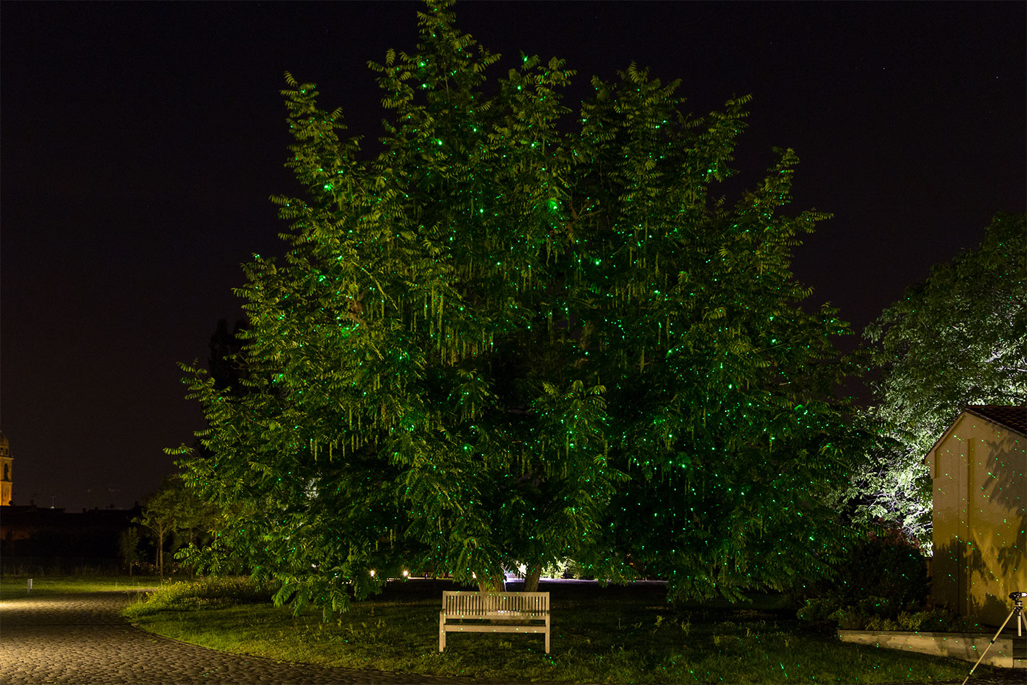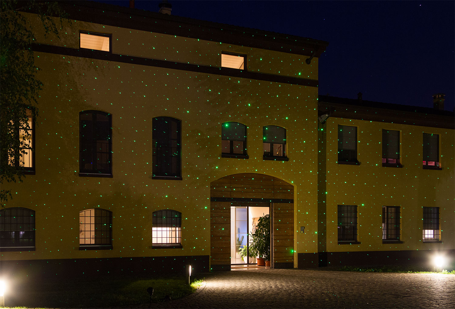 In linea generale con un proiettore non possiamo decorare vetri o illuminare il cielo. Otteniamo un effetto sgradevole anche se lo mettiamo in direzione di piante spoglie, senza fogliame.
