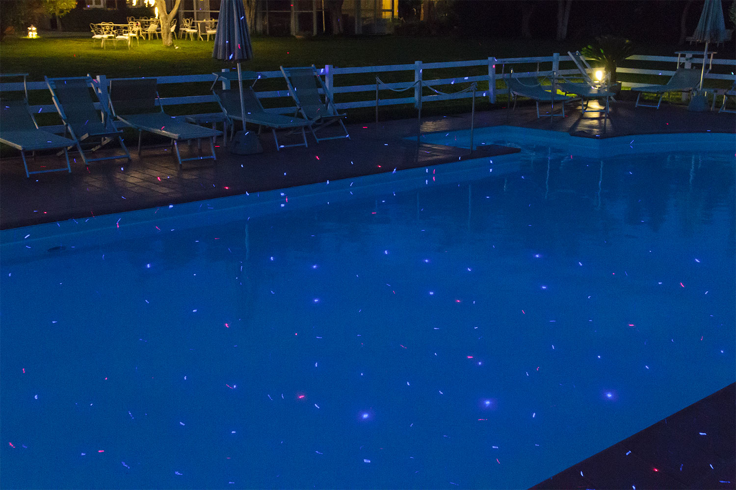 Il proiettore è ideale per decorare superfici solide, piscine e piante, cespugli e siepi. L’effetto su questi ultimi è soddisfacente se le chiome sono folte e ricche, così che le luci decorative facciano risaltare forme, volumi e colori.