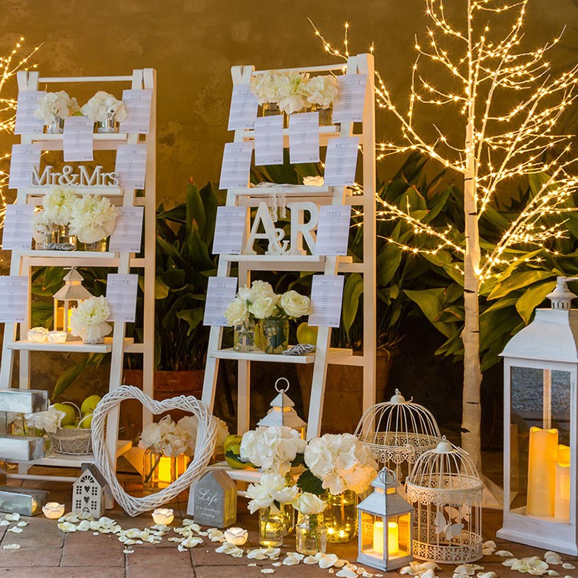 Puoi anche utilizzarle nell'allestimento di un matrimonio chic o di un matrimonio romantico all'aperto con addobbi pensati ad hoc, candele a batteria a forma di rosa, piccole candeline e lanterne bianche shabby.