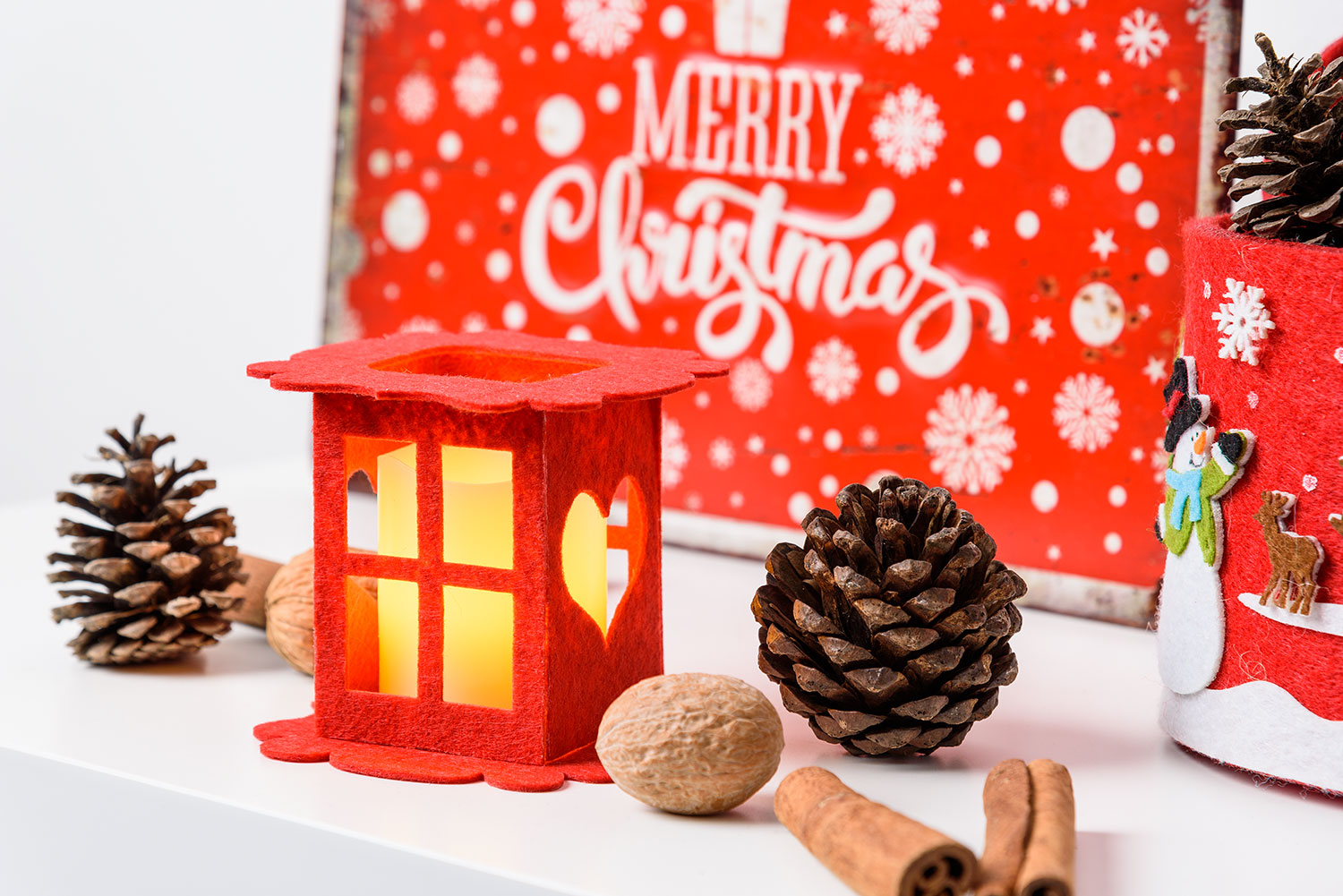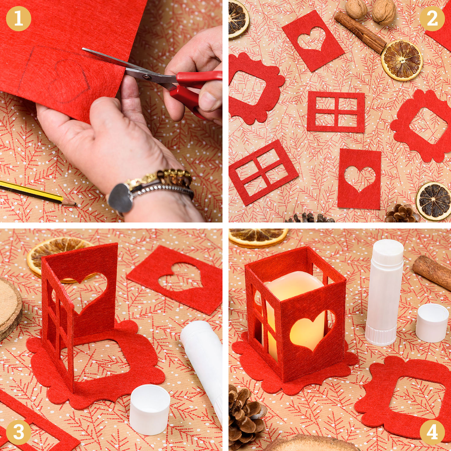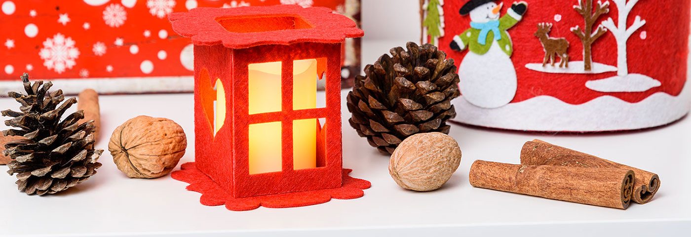 L'abbiamo già detto, il feltro è un materiale molto versatile e facile da maneggiare, per questo ti proponiamo una lanterna con candela realizzata con del feltro rosso.