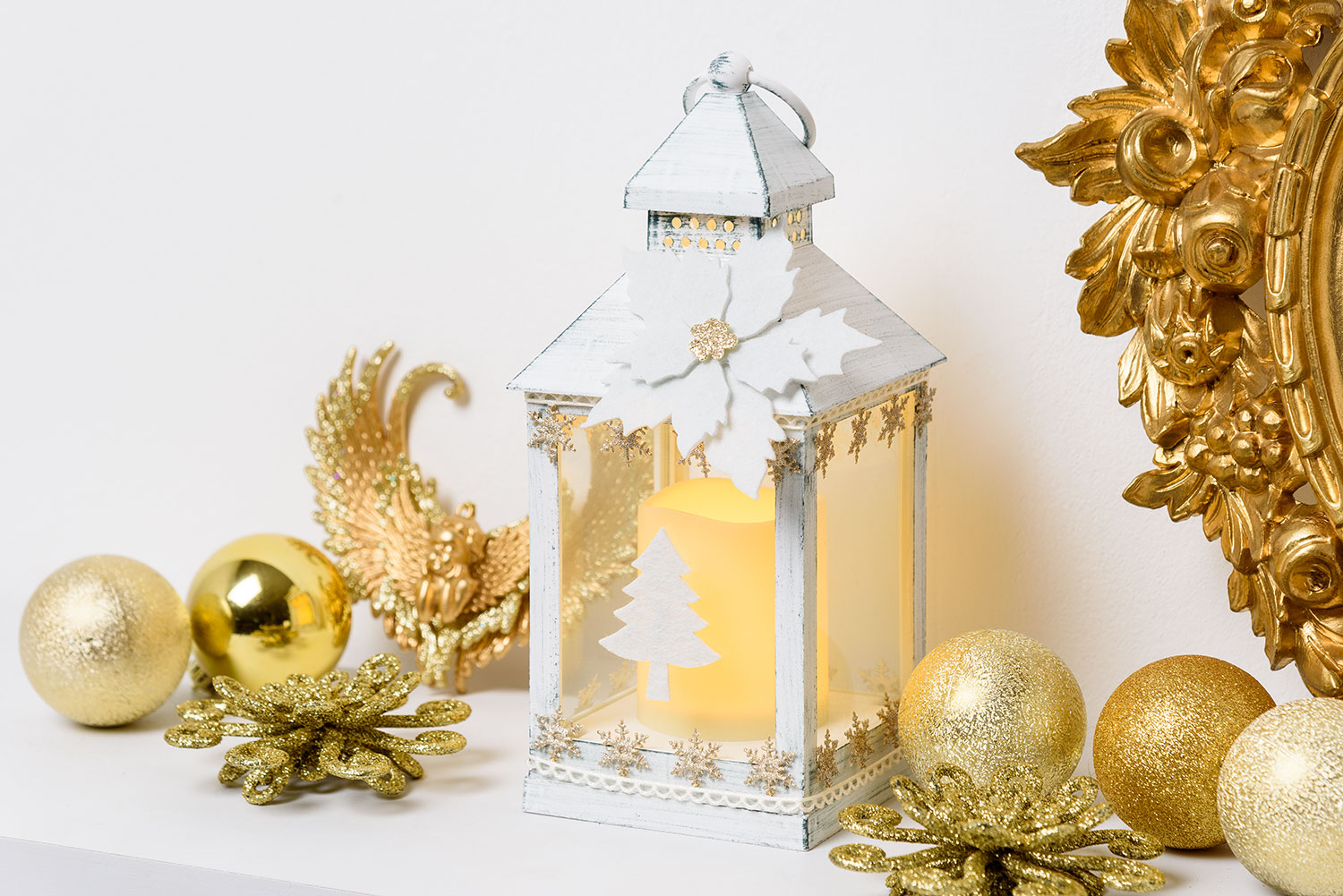 Se cerchi un modo per valorizzare il mobile dell’ingresso o per decorare la tavola di Natale con un grazioso centrotavola, questa lanterna fa al caso tuo. È una lanterna bianca che ospita una candela led a batterie. La luce calda si riflette sui vetri, che si prestano bene a essere decorati con motivi natalizi.