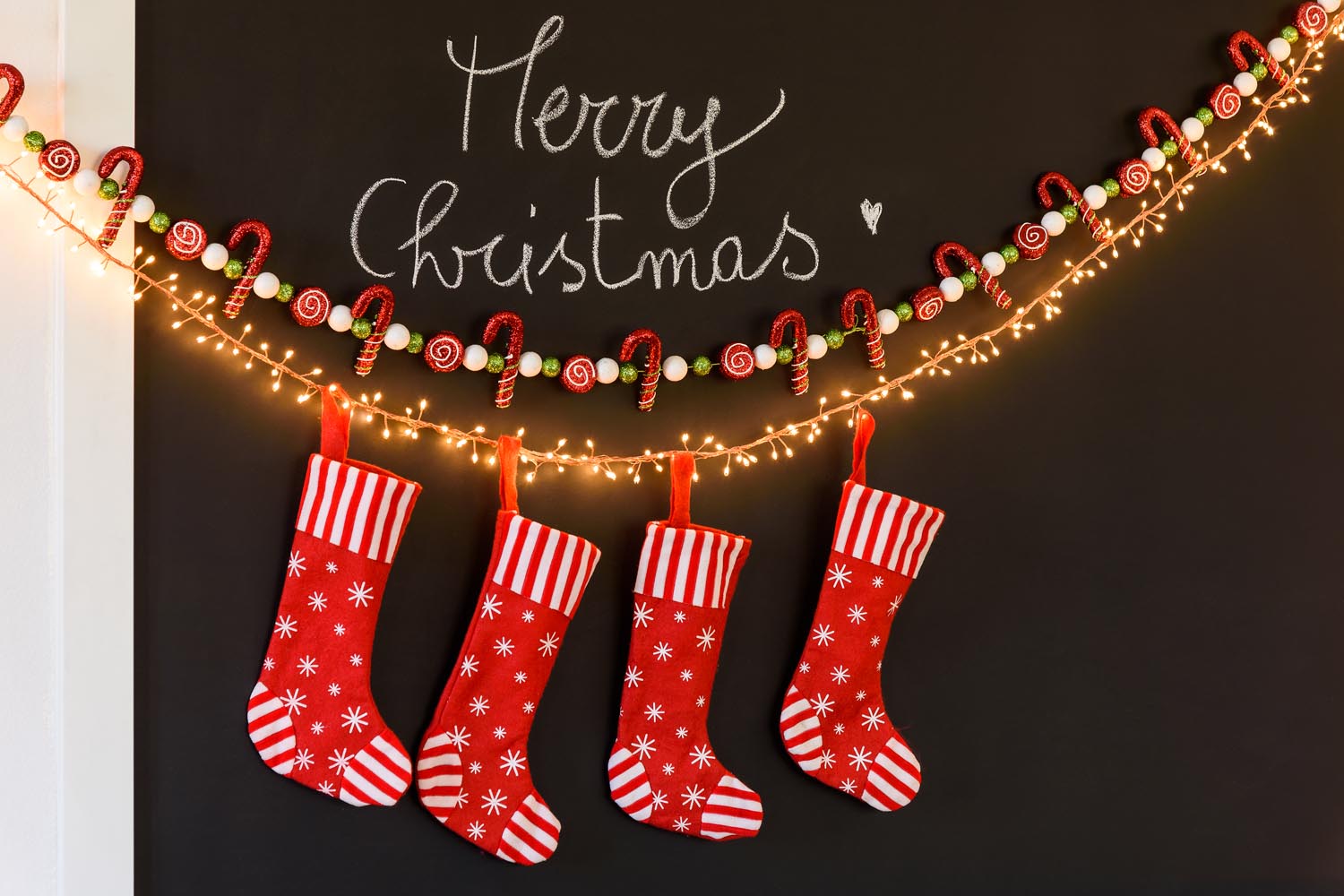 Ai festoni puoi appendere delle calze, come faresti a casa con il caminetto, e riempirle con dei dolcetti da donare ai colleghi che passano di lì.