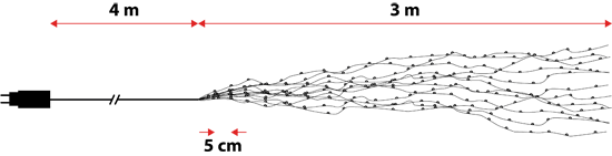 Questa è una cascata di luci lunga 3 metri con 900 microled disposti su 15 fili di cavo metallico di colore argento. Il cavo è sottile e malleabile, il che significa che puoi darli la forma che desideri per la tua decorazione.