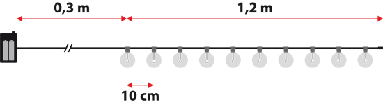 - 1,2 m di luci, 12 sfere in vetro Ø 40 mm
