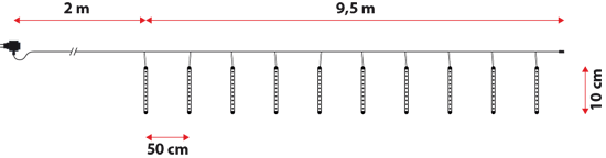 - 9,5 m, 20 tubi led lunghi 10 cm