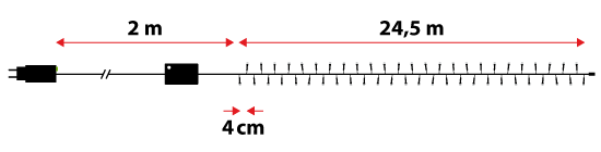 La catena ha le luci disposte a soli 4 centimetri di interspazio. E' utilizzabile sia all'interno che all'esterno per un periodo limitato di tempo, come durante le festività natalizie.