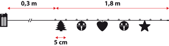 La decorazione, pensata per l'interno, funziona con 2 pile AA (non incluse). Il portabatterie ha un interruttore On-Off, con il quale si può anche attivare un timer 8/16 ore.