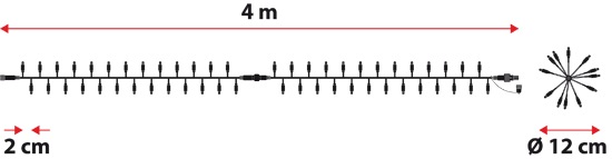 La decorazione fa parte della serie di luci professionali PML a 230 Volt IP67 caratterizzata dalla presenza di led resinati, cavi in gomma a doppio isolamento e connettori più robusti per una maggiore resistenza agli agenti atmosferici.