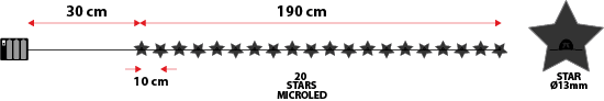 - 1,9 m di luci, 20 stelle microled Ø 13 mm