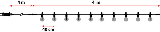 Grazie ai connettori integrati alle estremità, la catena può essere prolungata fino ad un massimo di 20 metri di lunghezza totale, collegando ulteriori 4 catene di prolunga Cod. 74071, che ha le stesse caratteristiche ma non dispone del cavo di alimentazione.