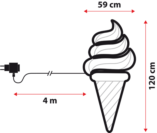 Figura luminosa alimentata a corrente e fornita con un cavo di alimentazione lungo 4 metri.