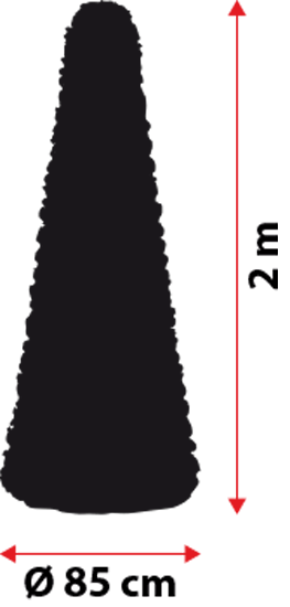 Cono in verde pino, h. 200 cm, diam. 85 cm, struttura in metallo