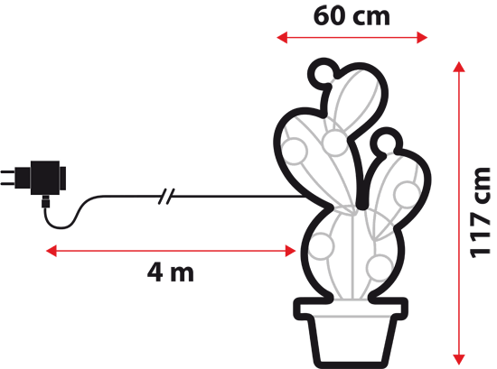 Questo articolo decorativo è pensato per allestimenti esterni temporanei. Led non sostituibili. Per l'installazione a terra utilizzare la base indicata tra gli accessori.