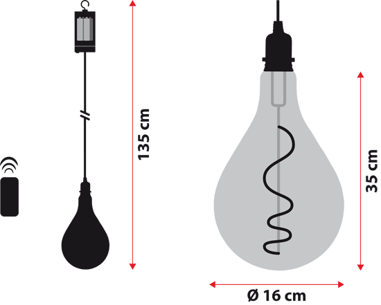 La lampadina ha un diametro di 160 millimetri e ha un filamento led a forma di spirale.