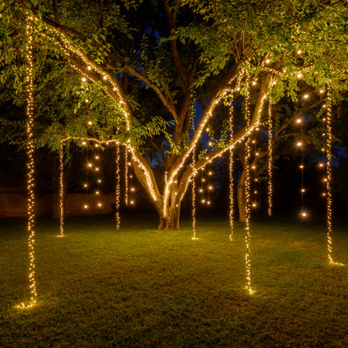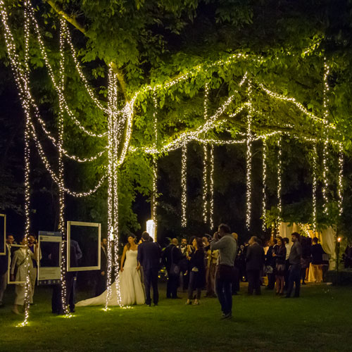 È possibile valorizzare location già molto belle? Sí, se le impreziosisci con decorazioni luminose che danno un tocco suggestivo e raffinato all’allestimento. La natura diventa la tua principale alleata: i tronchi e i rami si rivelano importanti sostegni per catene e tende di luci, ti permettono di realizzare incantevoli scenografie come i cieli stellati.