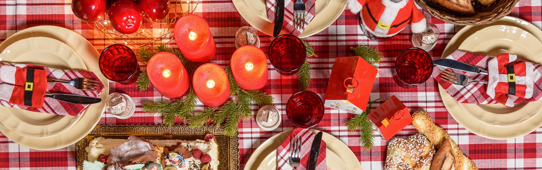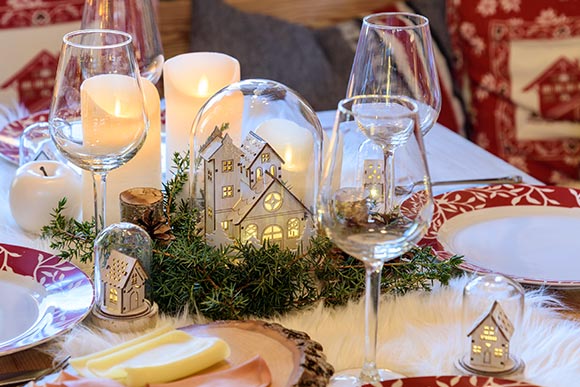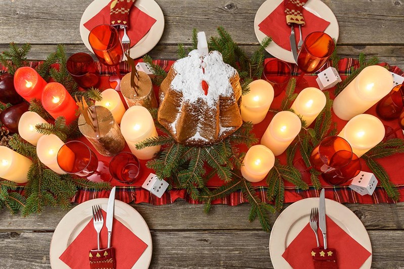 Una tavola tradizionale che mantiene la semplicità: bastano un runner con dettagli scozzesi e tante candele led