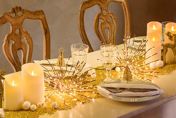 Sei alla ricerca di idee di decorazione per la tua tavola natalizia? Quest’anno crea originali centrotavola e mise en place con le luci natalizie led. Le decorazioni luminose addobbano la tavola, scaldano l’atmosfera e invitano i tuoi ospiti a prendere parte alla magia del Natale.