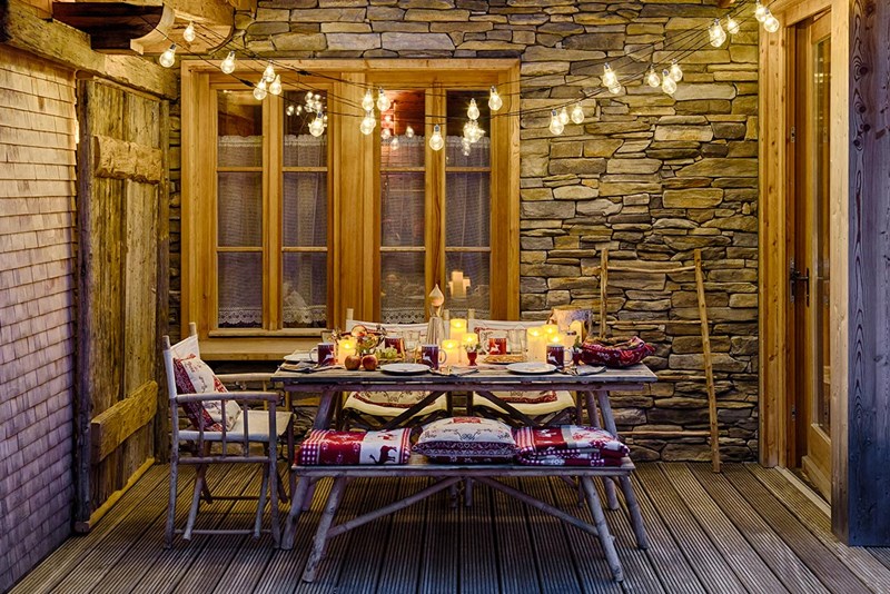 Pranzo di Natale sotto il porticato a lume di candela... e di lampadine vintage