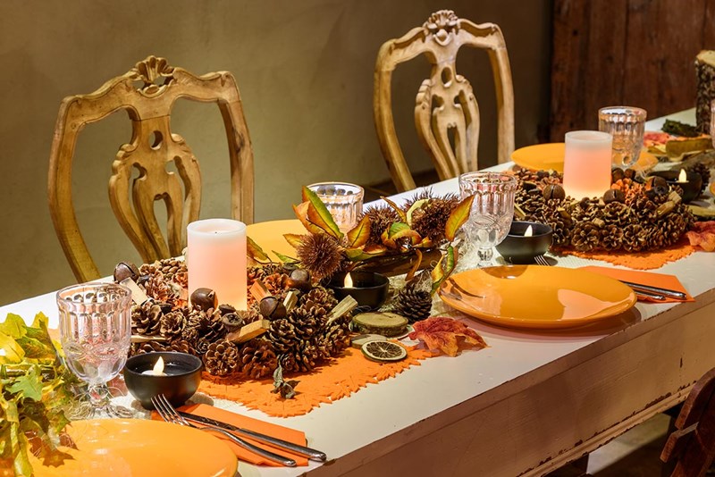 Tavola natalizia che richiama i colori caldi dell'autunno