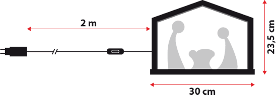 La Natività si alimenta a corrente, il cavo di alimentazione è nero e misura 2 metri.