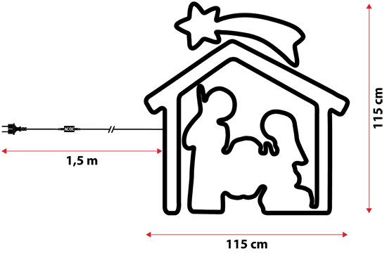5 / 5 - Presepe effetto neon h 115 cm, led bianco caldo