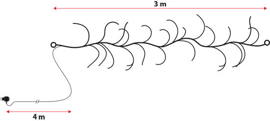 Da una lunghezza di 3 metri si diramano 36 rami lunghi circa 46 centimetri. Su ogni ramo sono integrati 8 micro led bianco caldo a luce fissa, a circa 6 centimetri l'uno dall'altro.