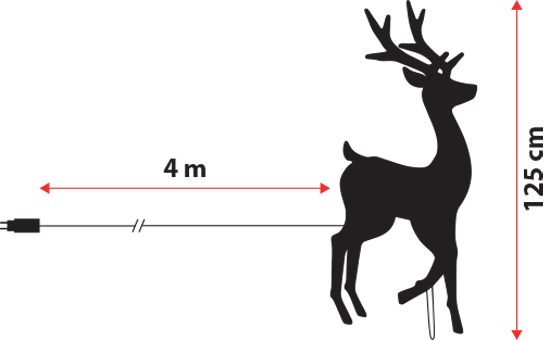 Il cavo di alimentazione trasparente è lungo 4 metri e questo permette di installare la renna anche lontano da prese elettriche.