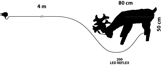 Il cavo di alimentazione consente, grazie ad una lunghezza di ben 4 m, la collocazione della renna anche in punti lontani da prese elettriche: in giardino, sul balcone di casa, in una vetrina o vicino all'albero di Natale.