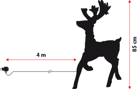 La decorazione è facile e pratica da installare e consuma fino al 90% in meno rispetto ad un'equivalente decorazione ad incandescenza. Il cavo di alimentazione lungo 4 metri ti permette grande libertà di movimento nell'allestimento di vetrine natalizie. Se non hai molto tempo ma vuoi far brillare i tuoi prodotti e attirare gli sguardi dei passanti una renna è la scelta giusta per te.