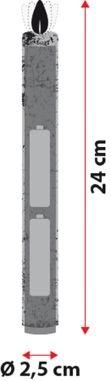 Grazie al pratico funzionamento a batteria (2 pile AA, non incluse) le candele possono essere posizionate dove desideri, senza vincoli di prese elettriche.