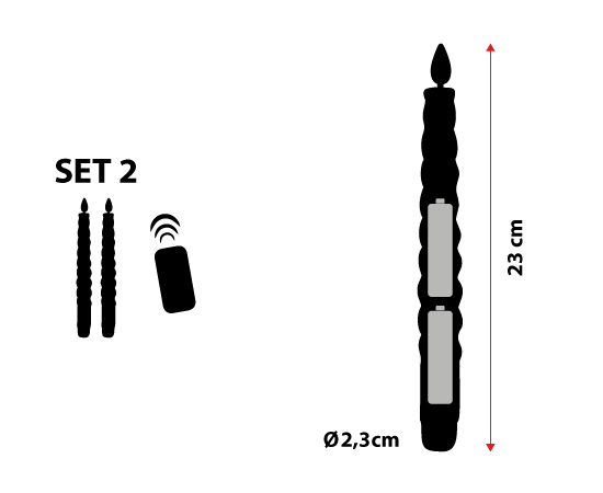 - 2 candele led Ø 2,3 x h 23 cm