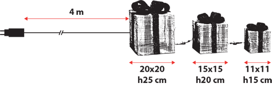 - 3 Pacchi Regalo 3D, h. 25/20/15 cm, 120 led