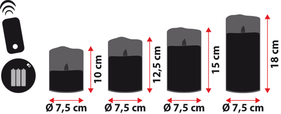 - Ø 7,5 x h 10/12,5/15/18 cm