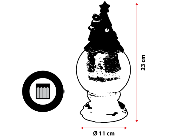 Con dimensioni di 11 cm di diametro e 23 cm di altezza, questa lanterna è perfetta per aggiungere un tocco di allegria natalizia a qualsiasi ambiente. Funziona con 4 batterie AAA (non incluse) e dispone di un porta batterie integrato sotto la base, accanto al quale si trova un pratico pulsante di accensione/spegnimento.