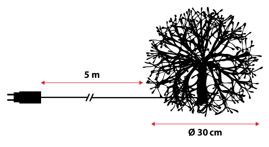 La sfera funziona a bassa tensione grazie al trasformatore incluso e dispone di un cavo di alimentazione lungo 5 metri, permettendo di posizionarla anche lontano dalle prese elettriche. È consigliabile utilizzare il prodotto all'interno.